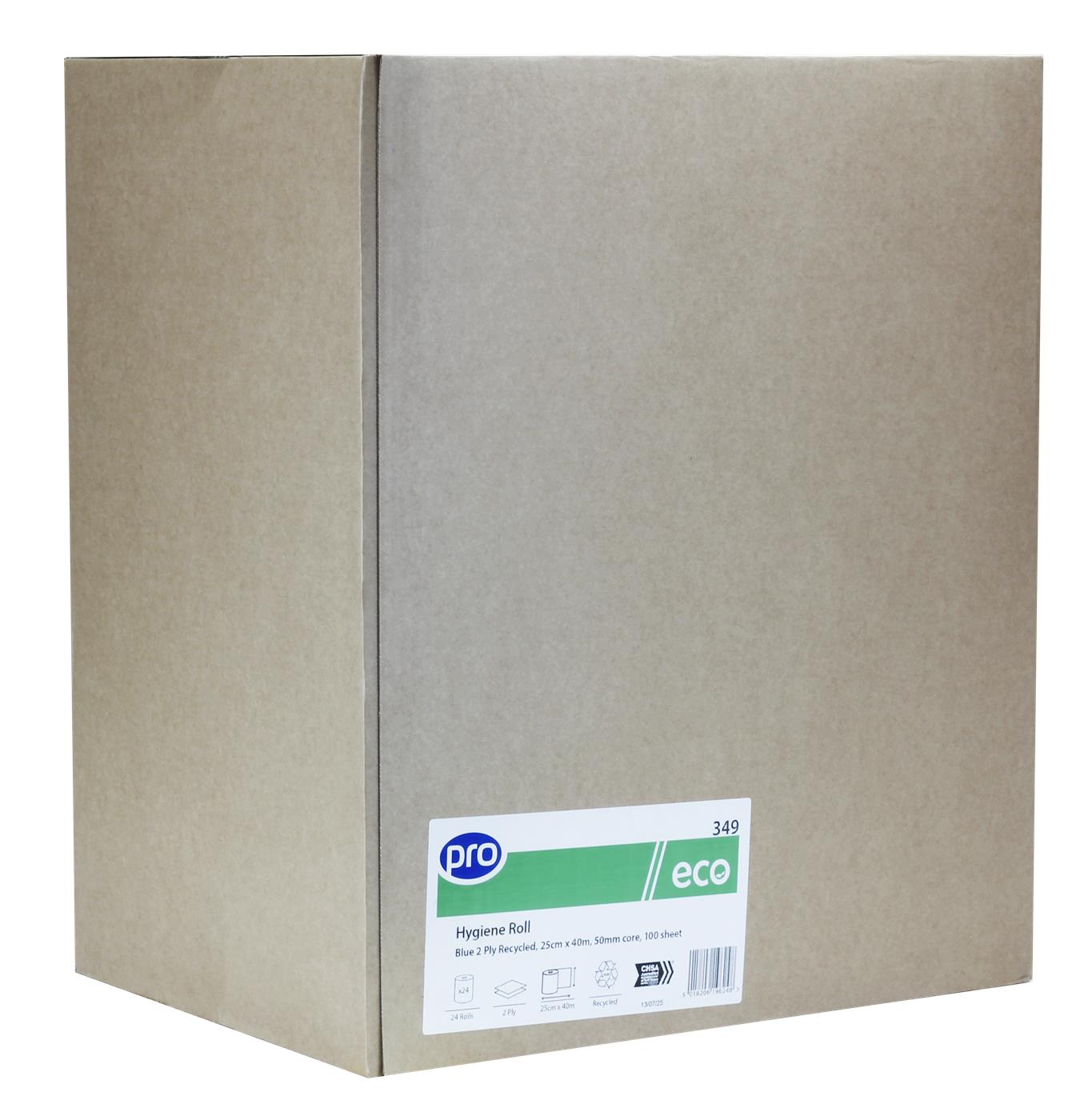 Paper Rolls Back to Hygiene Rolls PRO Hygiene Roll 2 Ply Blue Recycled PRO Hygiene Roll 2 Ply Blue Recycled 25cm x 40m 100 sheets per roll Code 349 Login to find out more Related products Code: 344 PRO Premium Hygiene Roll 2 Ply White