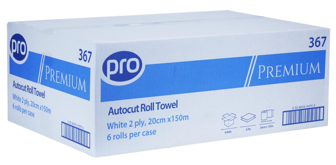 Paper Towels Back to Paper Roll Towels PRO Autocut 2 Ply White Roll Towel PRO Autocut 2 Ply White Roll Towel 2 Ply Pure Pulp, 6 Rolls per case Code 367 Login to find out more Related products Code: 368 PRO Autocut 1ply Blue Towel Roll 20cmx150m Code: 969 PRO Autocut Roll Towel Dispenser