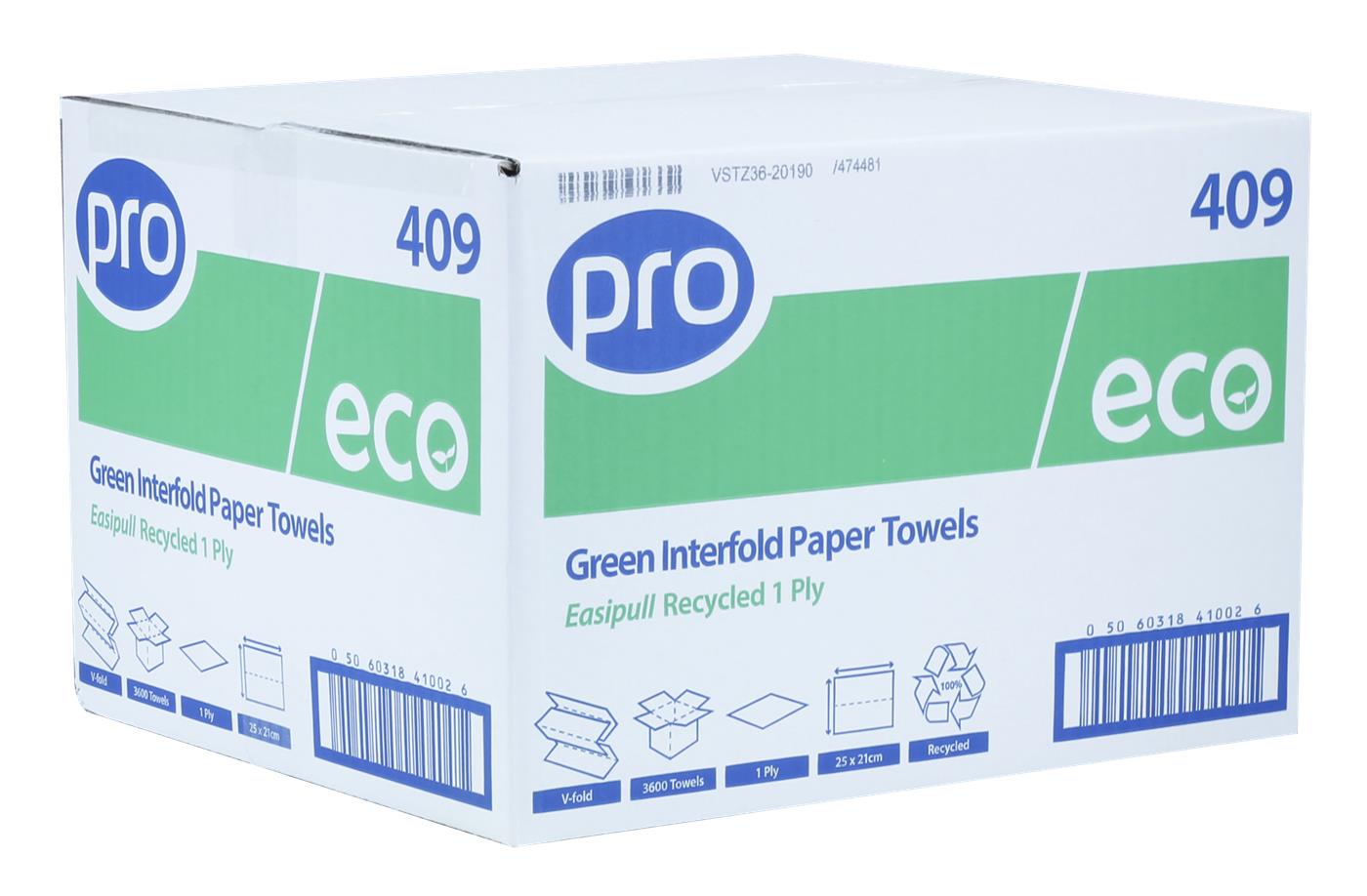 Paper Towels Back to V-Fold Paper Towels PRO Green V-Fold 1 Ply Recycled Paper Towels 25 x 21cm PRO Green V-Fold 1 Ply Recycled Paper Towels 25 x 21cm Great value easy pull paper towels in white, blue and green Code 409 Login to find out more