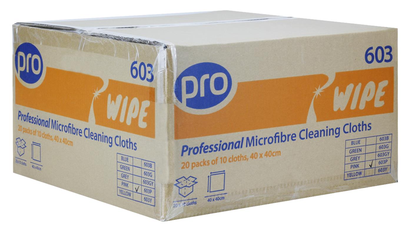 Cloths & Scourers Back to Microfibre Cloths PRO Professional Microfibre Cloths PRO Professional Microfibre Cloths 40 x 40cm microfibre cloths Code Colour 603Y Yellow 603P Pink 603G Green 603B Blue 603GY Grey Login to find out more Related products Code: 7025 Wax Free Polish H5 PRO Premium Microfibre Cloths 40x40cm Pro Blue Microfibre Glass Cloths 40cmx40cm PRO Economy Microfibre Cloths 40cmx40cm