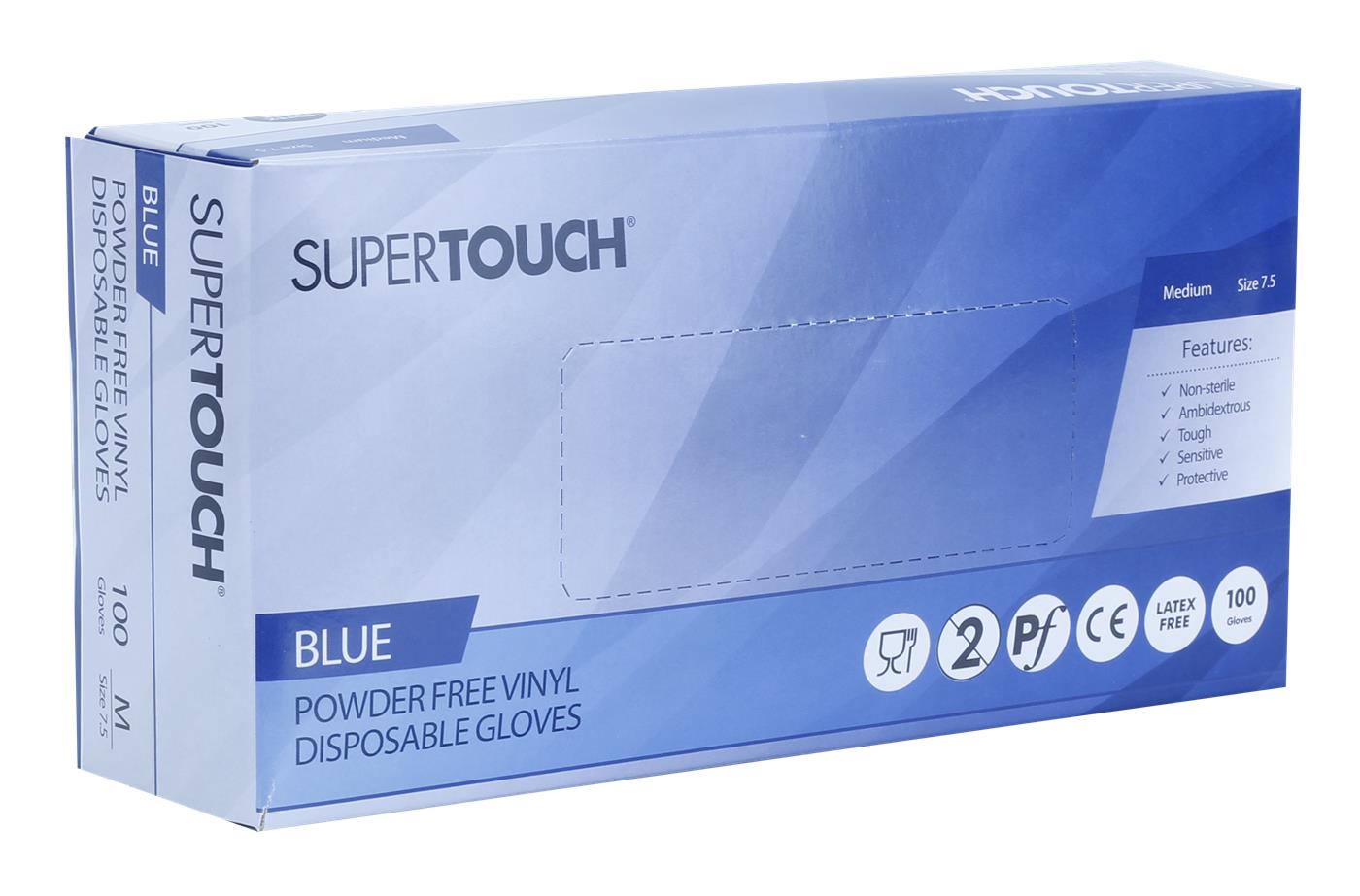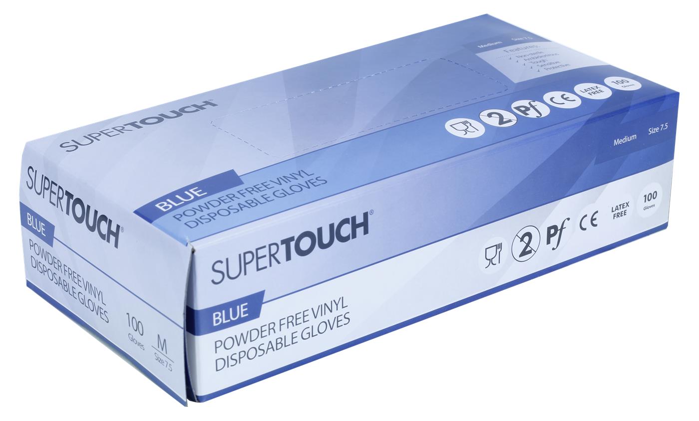 Gloves Back to Vinyl Gloves Super Touch Blue Vinyl Disposable Gloves Super Touch Blue Vinyl Disposable Gloves Powder-free & Latex-free Code Size 1261S Medium 1262S Large Login to find out more Related products PRO Powder-Free Clear Vinyl Gloves PRO Powder-Free Blue Vinyl Gloves